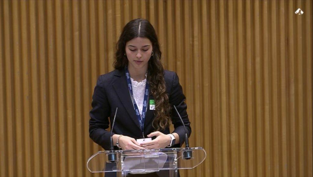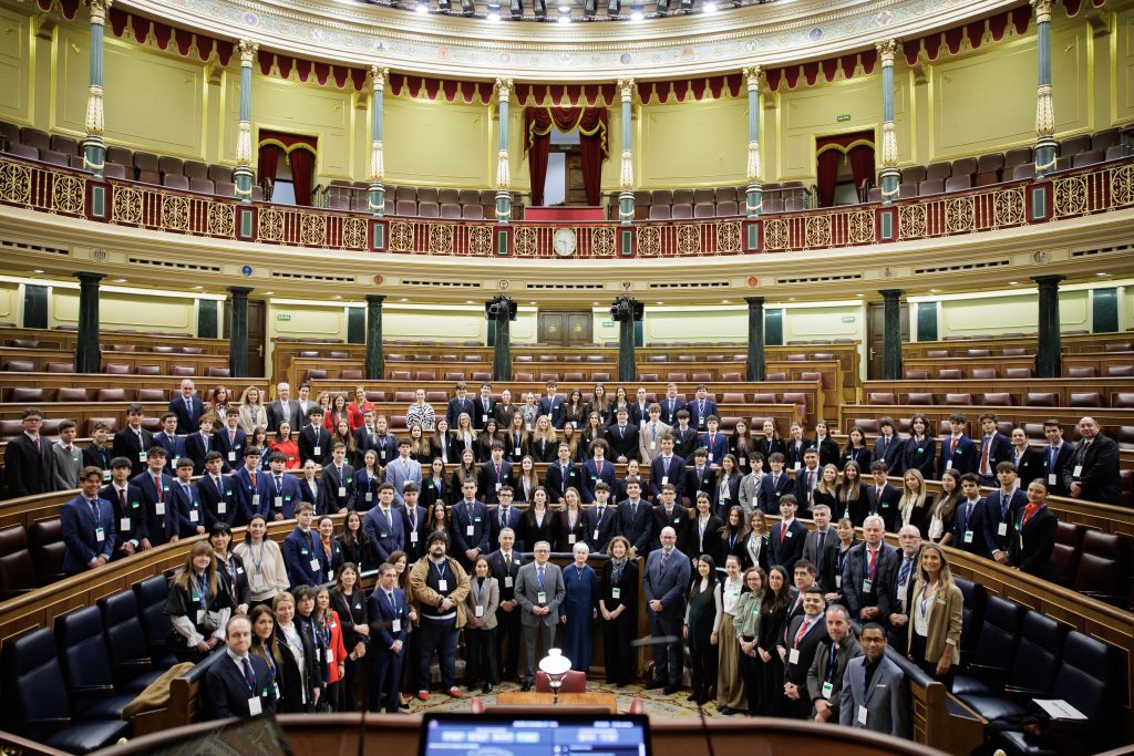 El punto culminante de la experiencia tuvo lugar el lunes, con la Asamblea General en el Congreso de los Diputados, donde pudieron defender sus propuestas en un entorno institucional único. Nos acompaña también Isabel Niño, presidenta de comisión, y nuestra ECI Alumni Valeria García, que continúa vinculada al programa.